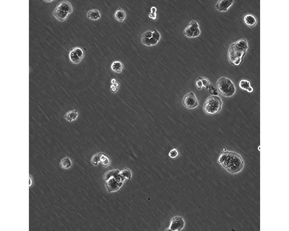 如果細胞密度達80%-90%,即可進行傳代培養。1. 棄去培養上清,用不含鈣、鎂離子的PBS潤洗細胞1-2次。2. 加2ml消化液(0.25%Trypsin-0.53mM EDTA)于培養瓶中,置于37℃培養箱中消化1-2分鐘,然后在顯微鏡下觀察細胞消化情況,若細胞大部分變圓并脫落,迅速拿回操作臺,輕敲幾下培養瓶后加少量培養基終止消化。3. 按6-8ml/瓶補加培養基,輕輕打勻后吸出,在1000RPM條件下離心4分鐘,棄去上清液,補加1-2mL培養液后吹勻。4. 將細胞懸液按1:2到1:5的比例分到新的含8ml培養基的新皿中或者瓶中。 |